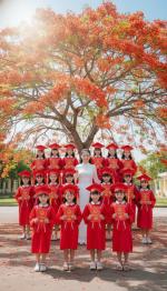 Giới thiệu mẫu áo cử nhân mầm non phối đỏ chi tiết