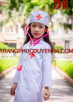 Trang phục y tá – bác sĩ trẻ em là trang phục phân vai nghề nghiệp bệnh viện. Trang phục gồm mũ và áo blouse dáng dài. Áo blouse màu trắng dài tay dáng dài. Thùa đính cúc nhựa, có 2 túi sườn.